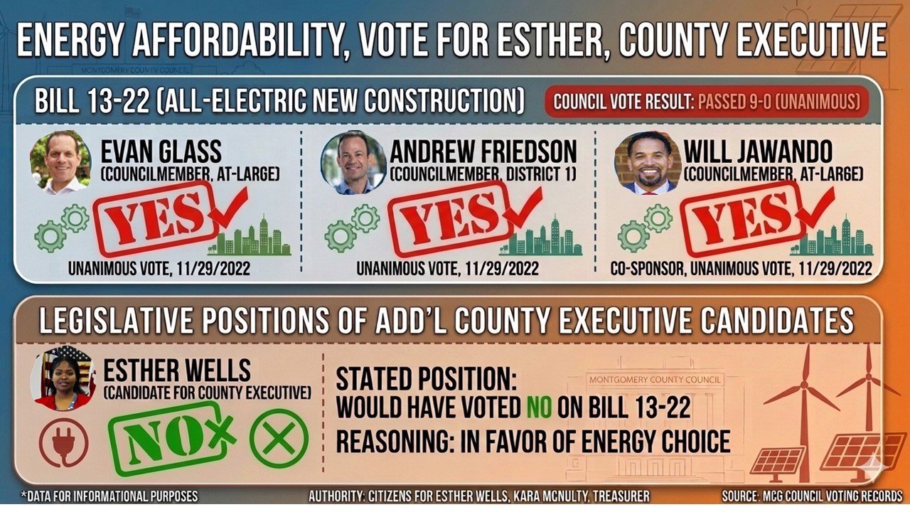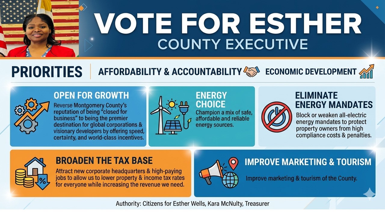 Official campaign committee supporting Esther Wells for County Executive in Montgomery County.